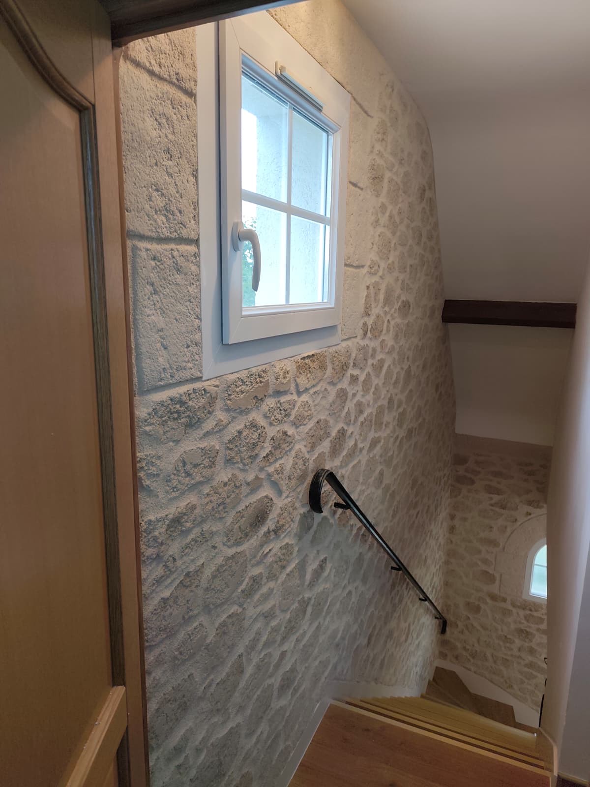 Découvrez comment notre Décopierre transforme cette cage d’escalier en un véritable élément de style. Grâce à ses textures naturelles et son rendu élégant, chaque détail apporte chaleur, caractère et raffinement à votre espace.