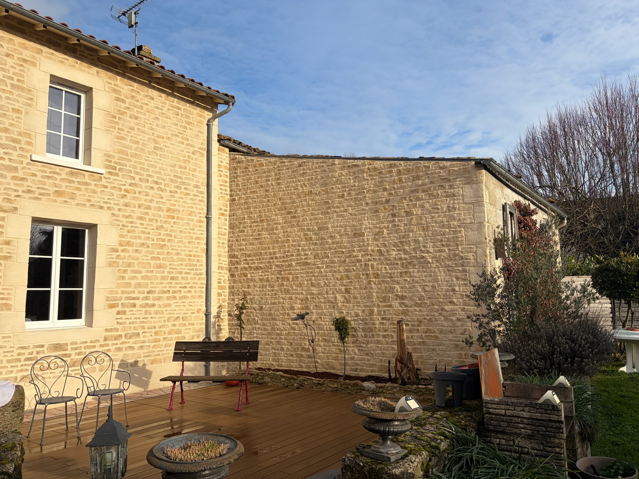 Nous avons réalisé ce ravalement décoratif à la chaux avec notre enduit DECOPIERRE sur l'ensemble des façades de cette maison. L'objectif était de créer une ambiance maison du Marais poitevin. Nous avons également réalisé l'application d'un hydrofuge de surface. Merci à notre client qui nous a fait confiance.